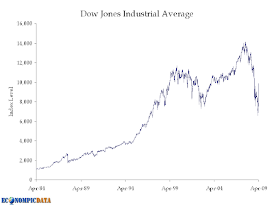 April Fools! Yes, I should've made that figure less to be more realistic, but looking at the chart below which shows how things would look if it were indeed up 30%, the Dow would still be more than 40% below its high....